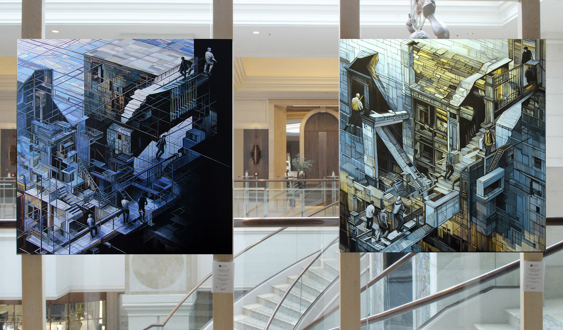 Kroz seriju postapokaliptičnih urbanih pejzaža, dr Anđelković istražuje kako prirodni elementi, poput vode, postaju arhitektura kroz likovni jezik. Koristeći plavu boju kao centralni simbol obnove i rekonstrukcije, autorka preispituje odnos infrastrukture i prostornih promena, integrišući apstraktnu tektoniku u gradsku strukturu.