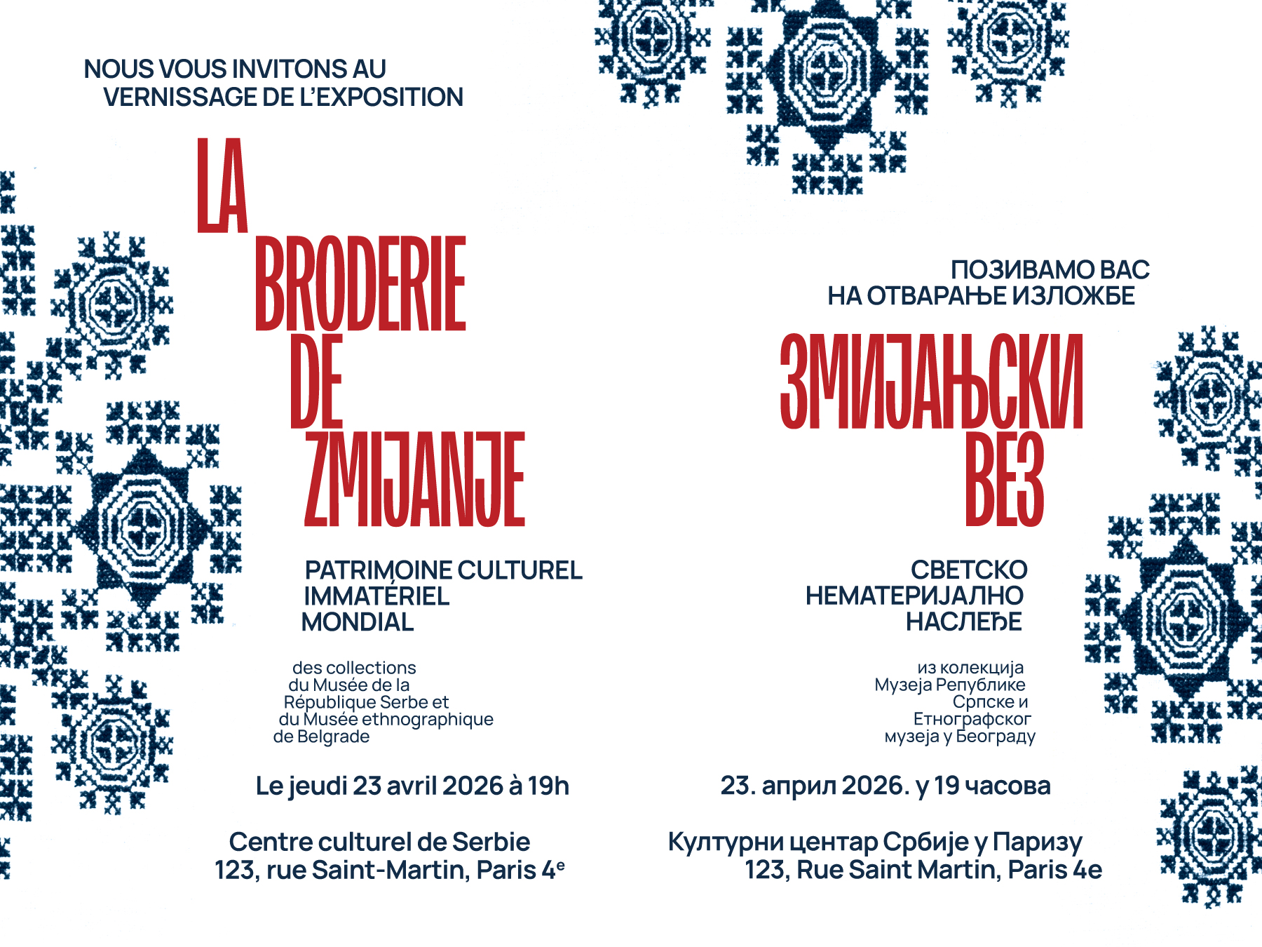 Etnografski muzej u Beogradu i Muzej Republike Srpske predstavljaju zajednički projekat — izložbu „Zmijanjski vez – svetsko nematerijalno nasleđe iz kolekcija Muzeja Republike Srpske i Etnografskog muzeja u Beogradu“, koja će se održati u Srpskom kulturnom centru u Parizu (123, rue Saint-Martin, Pariz 4e).